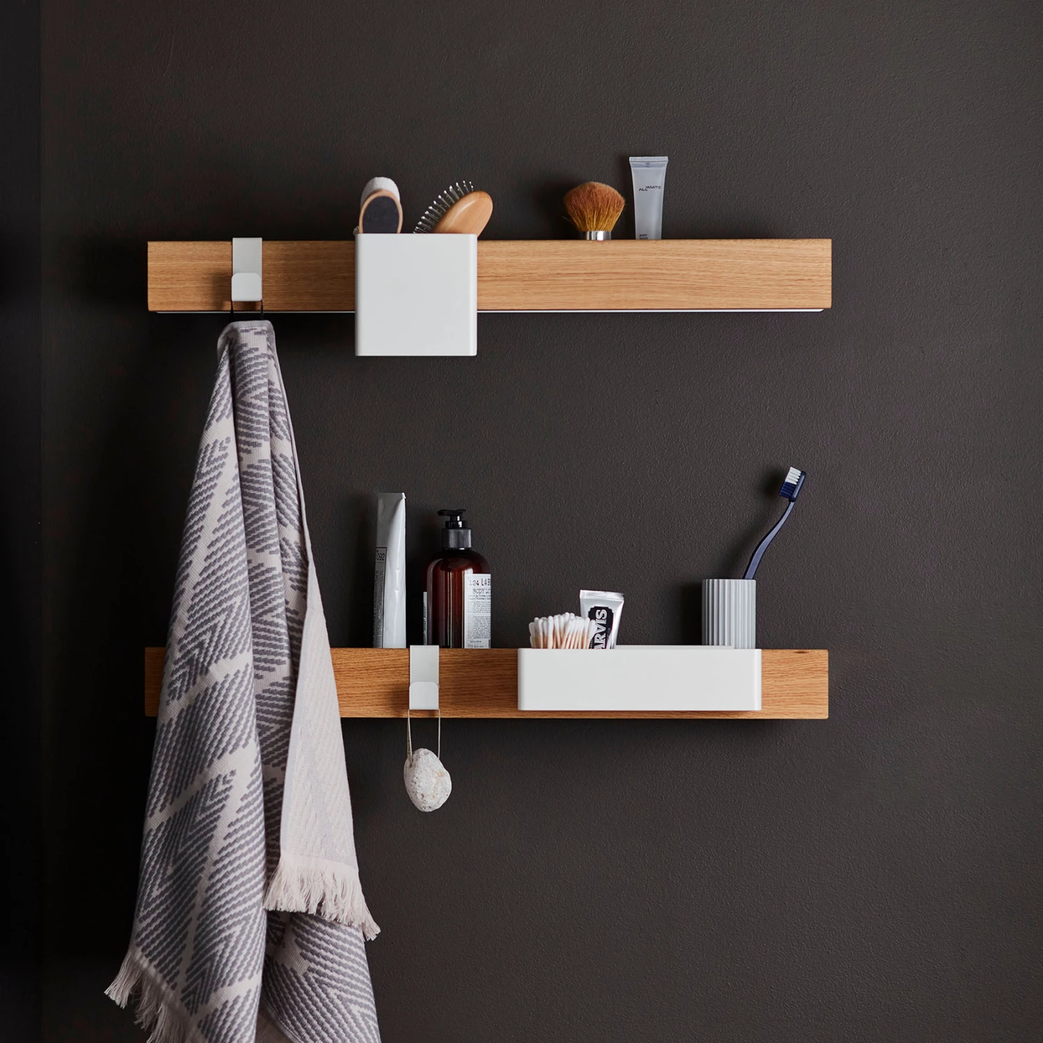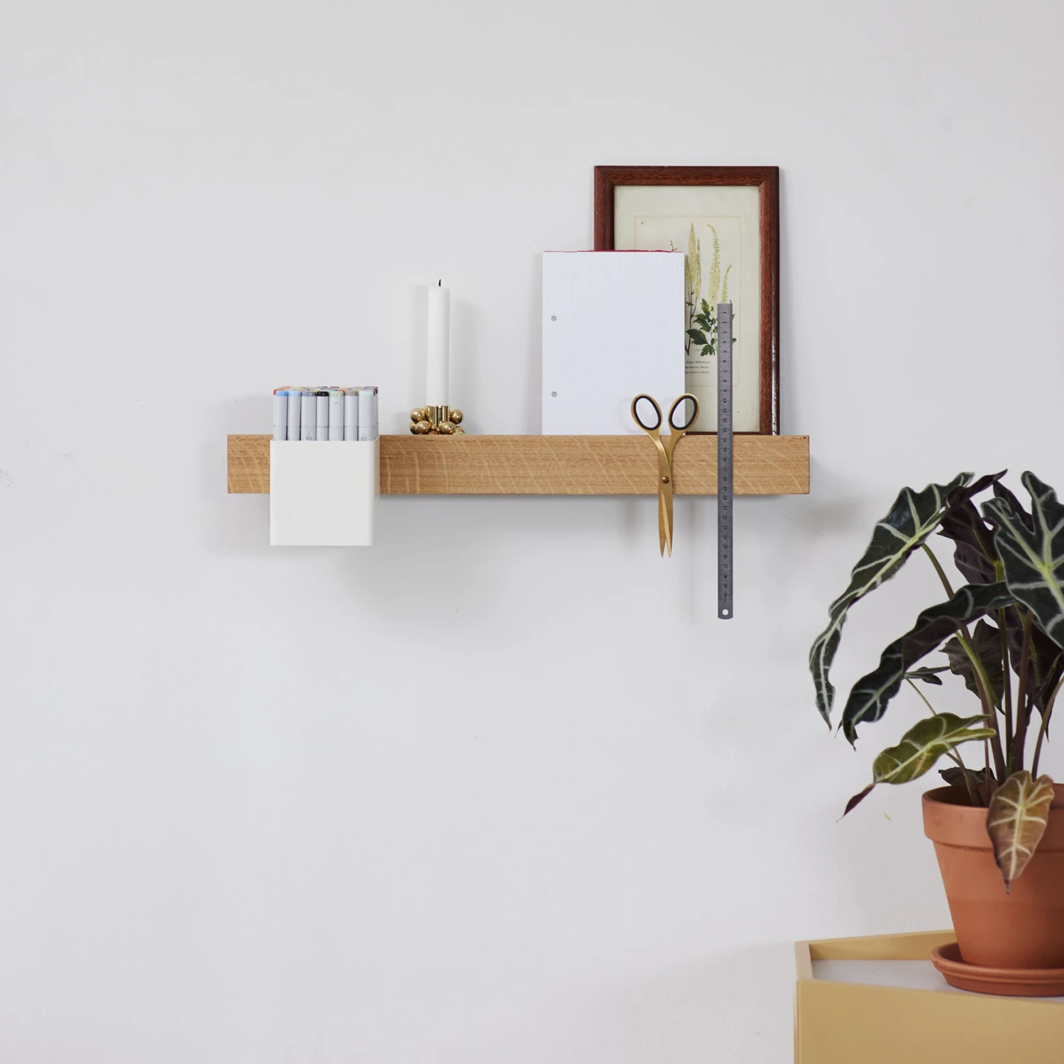 The Flex Rail magnetic rail 60 cm from Gejst is the foundational element of the multifunctional Flex storage system. The magnetic strip is clad in wood to give it a stylish and Scandinavian aesthetic. Simply attach the magnetic rail to your shelf or wall and you have an instant storage solution — all manner of magnetic items will attach to it in an instant so that you can have them close at hand and easily accessible. Combine the magnetic rail with various steel accessories from the Flex collection such as hooks or drawers so that you can tailor the piece precisely to your needs. The stylish Flex storage shelf makes a wonderful addition to the kitchen, hallway, or office area to help organize it and make your space more accessible. You can easily store all manner of objects: everything from kitchen utensils and knives to various decorative details. Plus, if you need more storage space, it’s seamless to add more magnetic strips!