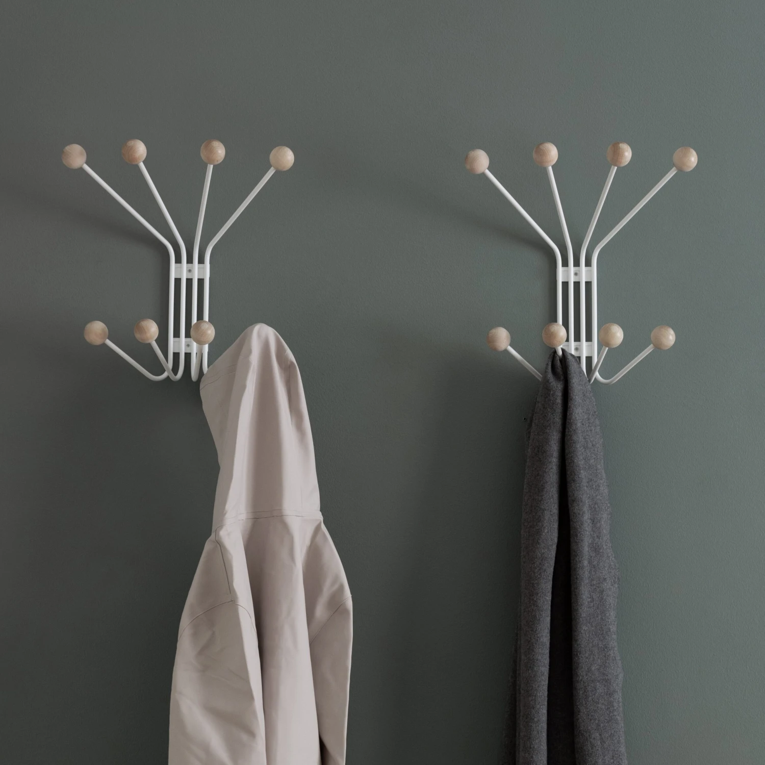 Bill is a modern hanger in classic style for the hall. Made in white lacquered metal and eight wooden knobs.