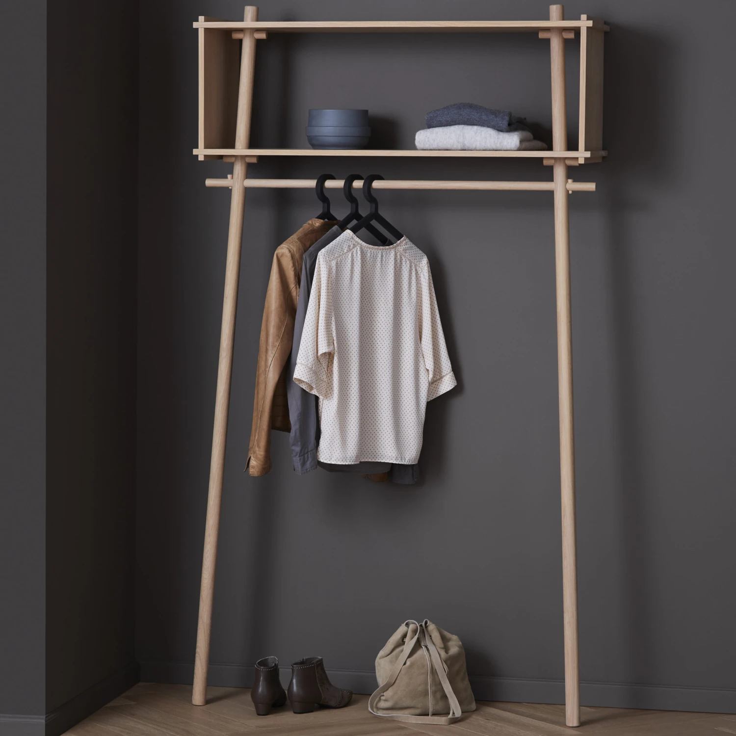 The Illusion hanger is designed by Danish brand Woud and is made to tease and challenge your imagination. Due to its oblique angles you get the illusion that the hanger is hanging sideways, giving it an exciting and decorative impression even when nothing is hanging on it. Thanks to their clever design, the hangers do not take up unnecessary space in your wardrobe, all while providing an overview of your clothes in a structured way. The hangers are available in black and white and come in sets of three.